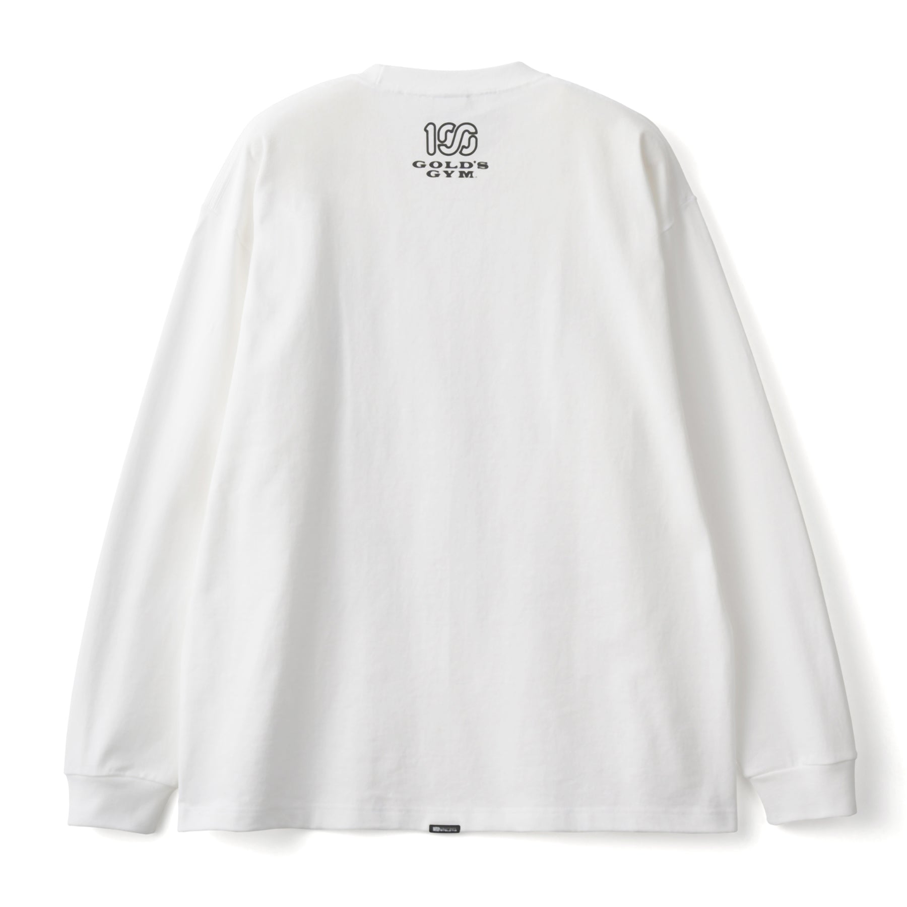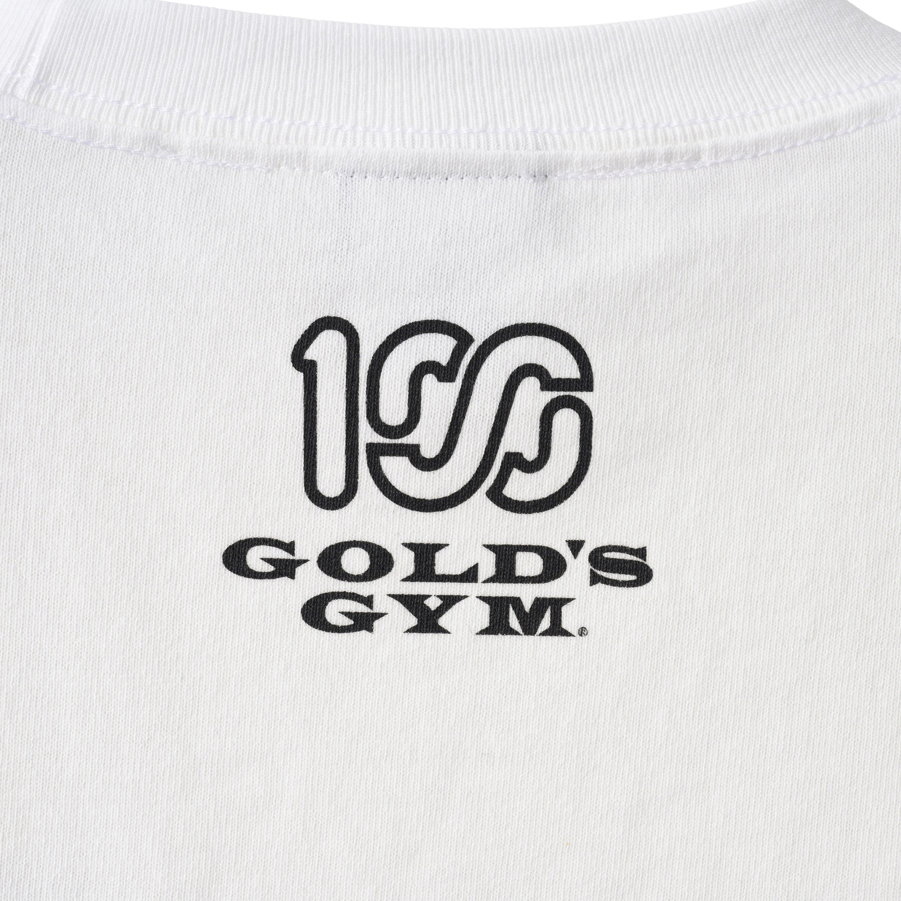 フロントにはGOLD'S GYM のオールドマンと100A のレクタングルロゴを組み合わせたデザイン、バックにはコラボレーションロゴをプリント。
