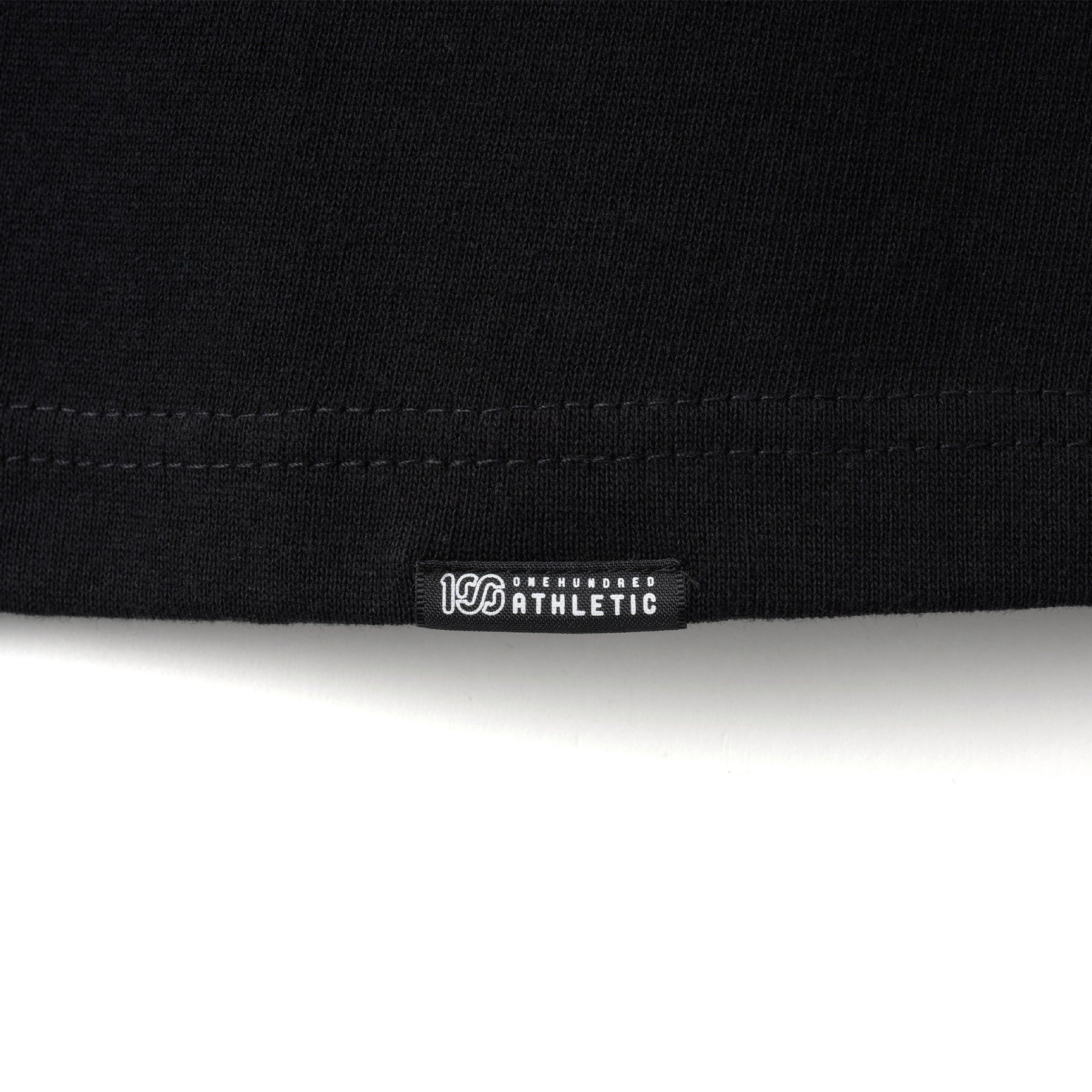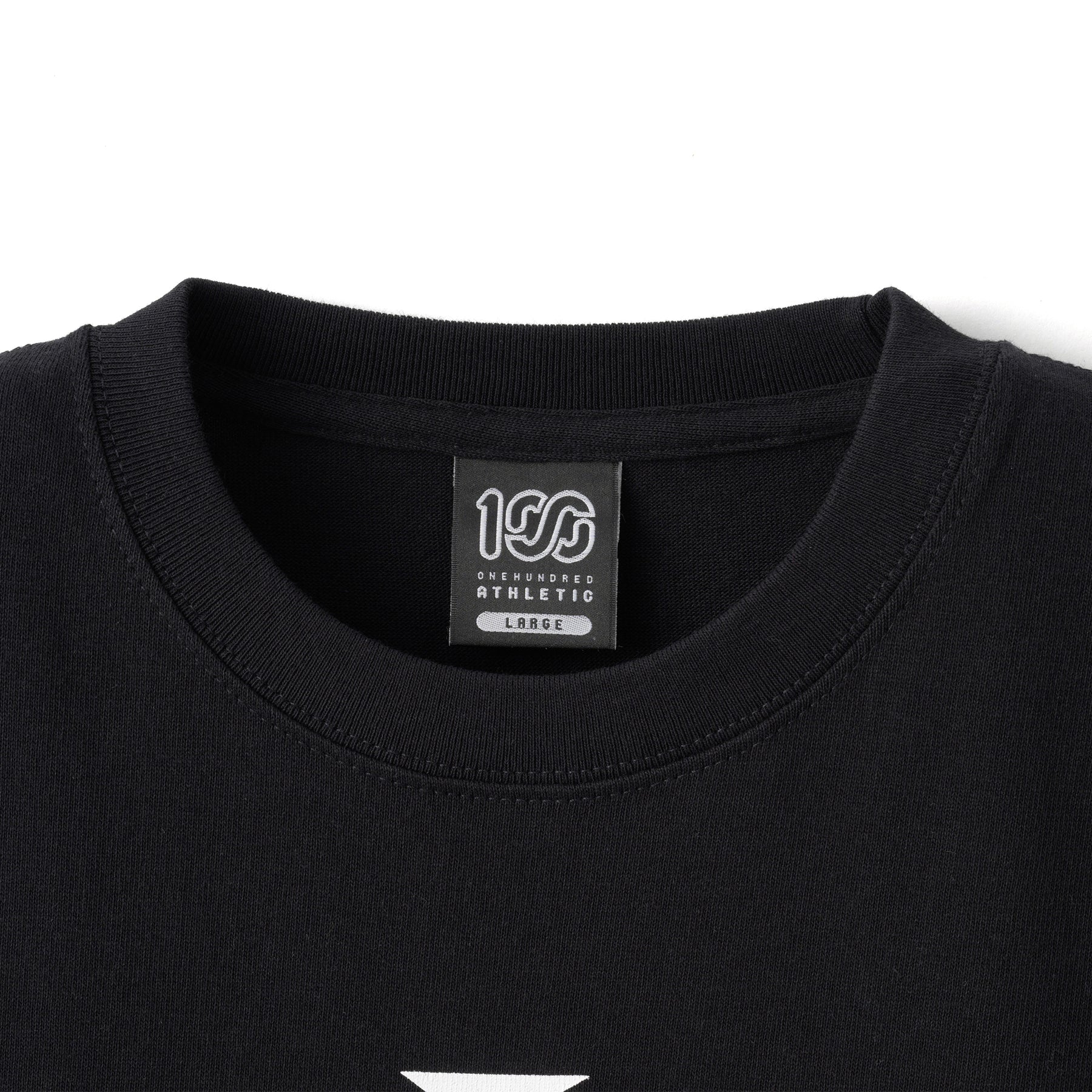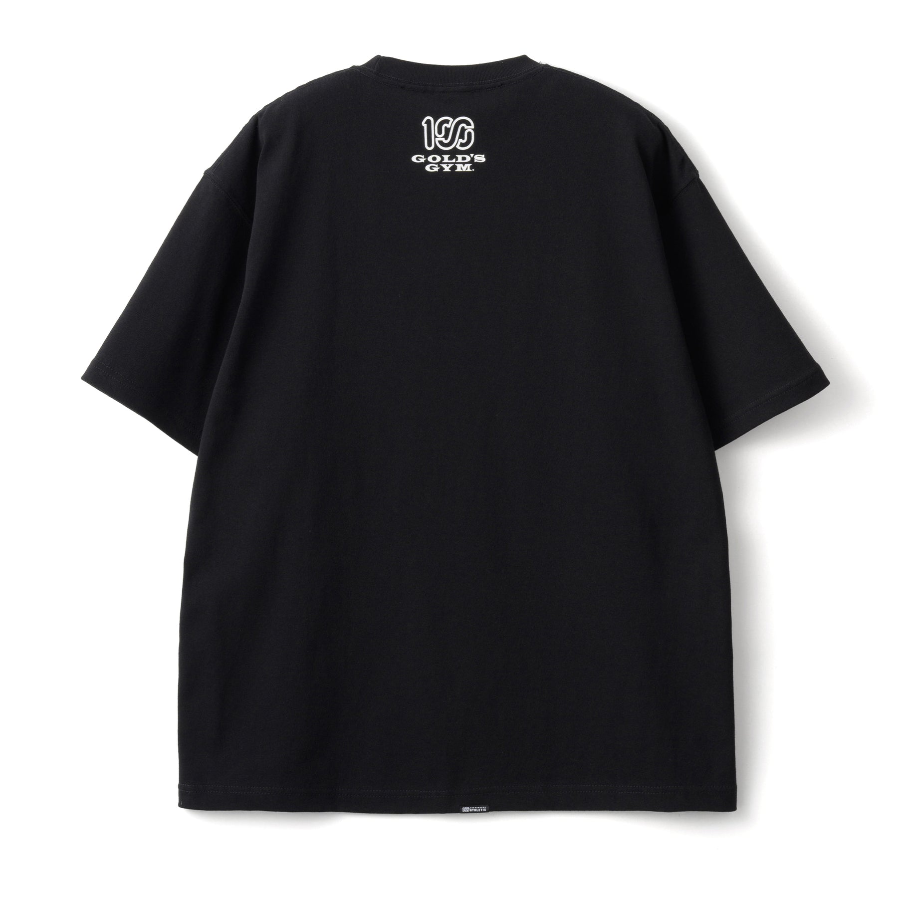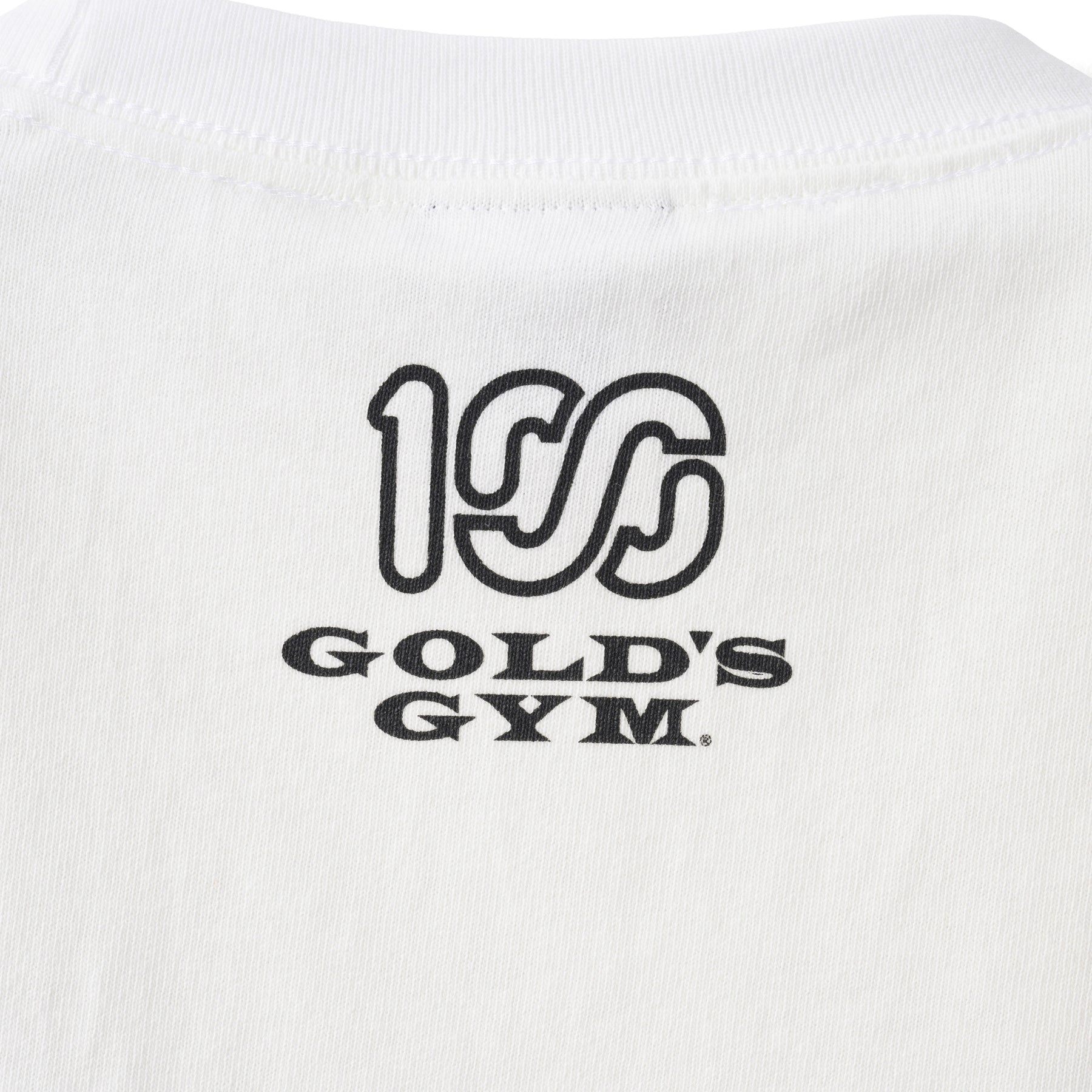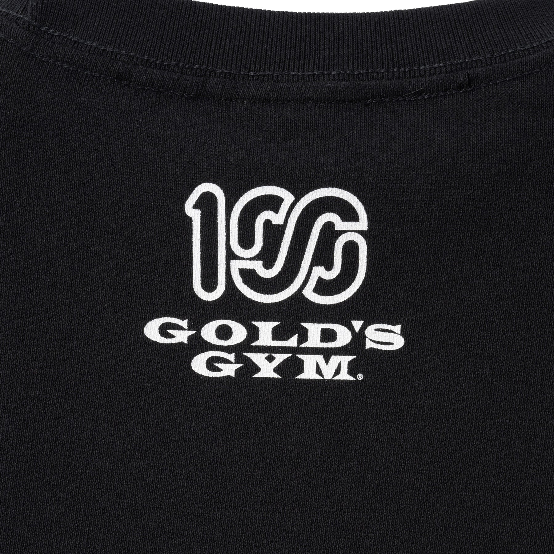 フロントにはGOLD'S GYM のオールドマンと100A のレクタングルロゴを組み合わせたデザイン、バックにはコラボレーションロゴをプリント。